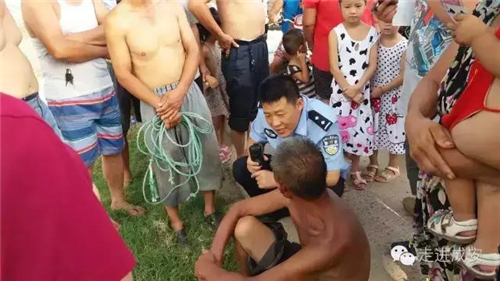 工作人員到現場后與老人交談,老人有些神志不清,也不知道是什么時候掉落水的。