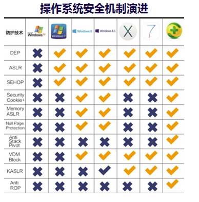 360XP盾甲的這些安全特性加固了XP系統以及Office、IE瀏覽器的安全性弱點。同時可以看到,anti stack pivot和anti-rop這樣的安全特性,在最新的Win8.1和蘋果操作系統也不具備。再加上沙箱隔離防護措施,即使是遍布漏洞的XP系統,穿上360XP盾甲后,黑客也難以攻破。