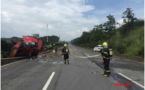 11日13時42分許,杭瑞高速K2160(易隆服務(wù)區(qū))路段發(fā)生一起運輸危化品的重型半掛牽引車(載液氨)與小型客車相撞的事故。民警到達現(xiàn)場核實事故造成2人死亡,1人受輕傷。由于牽引車所載液氨泄漏,目前無法勘查現(xiàn)場。為確保安全,云南省公安廳交通警察總隊高速公路交巡警昆曲大隊對過往車輛進行管制、分流。事故中心現(xiàn)場正由消防專業(yè)人員佩戴防毒面具進行稀釋。