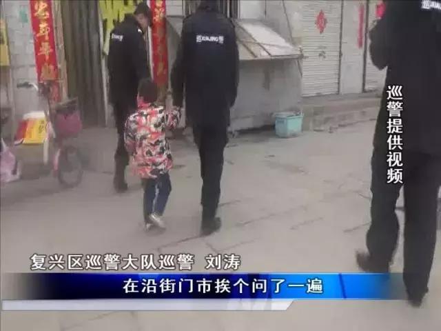 巡警劉濤說,順著煙酒門市老板指的方向,他和其他三名同事帶著瀚瀚來到了后百家村,在村里,民警見到了一位大姐。幸運的是,這位大姐正好認識三歲的瀚瀚,而且知道他家在那。